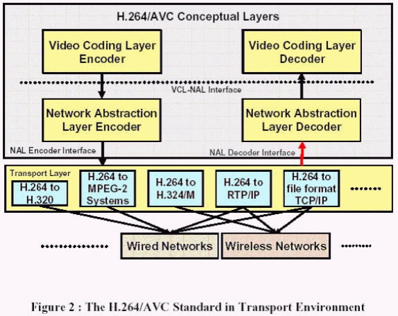 根據(jù)圖2,H.264/ AVC在不同的概念層上區(qū)分開來(lái),視頻編碼層(VCL)和網(wǎng)絡(luò)抽象層(NAL)。VCL和NAL都是H.264/ AVC標(biāo)準(zhǔn)的一部份。VCL對(duì)視頻編碼信號(hào)進(jìn)行了有效的說(shuō)明。H.264/AVC的NAL定義了視頻編碼和外面世界之間的接口。它通過(guò)NAL單元來(lái)支持大部分基于包的網(wǎng)絡(luò)。在NAL解碼接口,它假設(shè)NAL單元已經(jīng)通過(guò)解碼命令被發(fā)送,數(shù)據(jù)包要么被正確接受,要么丟失,如果有效載荷里包括了錯(cuò)誤的數(shù)據(jù)流,NAL單元的頭就會(huì)產(chǎn)生一個(gè)錯(cuò)誤的標(biāo)記。由于標(biāo)記可以用于不同的目的,因此它并不作為標(biāo)準(zhǔn)的一部分。然而,它提供一個(gè)在整個(gè)網(wǎng)絡(luò)里提供錯(cuò)誤指示信號(hào)的方法。此外,接口規(guī)范要求標(biāo)準(zhǔn)化主體有責(zé)任對(duì)不同傳送協(xié)議進(jìn)行描述。NAL單元在不同傳輸系統(tǒng)的精確傳輸和加密,例如H.320,MPEG-2系統(tǒng)和RTP/IP,也同樣在h.264/AVC標(biāo)準(zhǔn)化的范疇以外。在標(biāo)準(zhǔn)里面正式定義了NAL解碼接口,然而,VCL和NAL之間的接口只是概念上的定義,主要是幫助描述和分開VCL和NAL的任務(wù)。