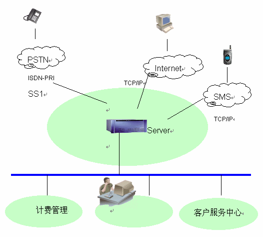 支持普通電話、傳真、IP電話以及其他任何采用H.323協(xié)議的Internet呼入;支持普通電話、IP電話、傳真、短信等方式的呼出,系統(tǒng)的呼入和呼出方式都可以根據(jù)業(yè)務需要方便的擴展。