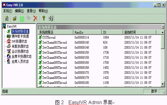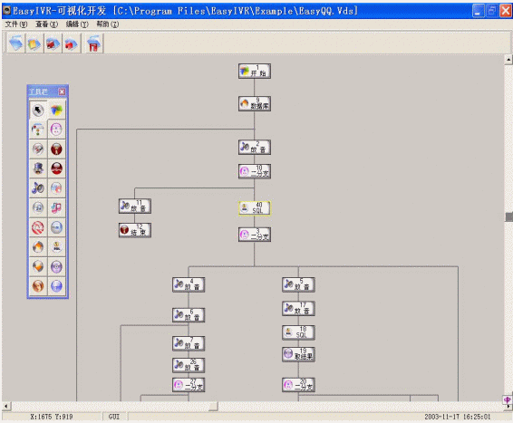 兩個集成環(huán)境,EasyIVR Studio負責自動語音流程的編輯和調(diào)試,EasyIVR Admin負責對語音卡硬件的操作和按照EasyIVR Studio生成的具體語音流程的實現(xiàn)。EasyIVR綜合實現(xiàn)了呼叫中心中IVR(Interactive Voice Response交互式語音應答)、IFR(Interactive Fax Response 交互式傳真應答)和自動外撥服務的功能。