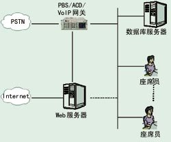 在處理來(lái)自Web的語(yǔ)音呼叫時(shí),來(lái)電也必須與普通的語(yǔ)音來(lái)電一樣,經(jīng)過(guò)交換及排隊(duì)處理。將PBX、ACD、VoIP網(wǎng)關(guān)集成,使之既能處理來(lái)自Web的語(yǔ)音呼叫,也能處理來(lái)自PSTN的語(yǔ)音呼叫。