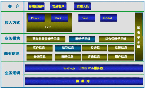 華泰貝通與南通珠峰電腦公司合作建設(shè)的南通煙草客戶服務(wù)中心系統(tǒng),覆蓋南通市和下屬六個縣市,實現(xiàn)了電話訪銷、電子結(jié)算、物流配送等業(yè)務(wù)功能,是煙草銷售業(yè)電子商務(wù)的典型案例,南通煙草在現(xiàn)有電子商務(wù)平臺基礎(chǔ)上,將進一步發(fā)展與完善系統(tǒng)功能,建立一個穩(wěn)定實用、數(shù)據(jù)高度共享、緊扣業(yè)務(wù)需求及調(diào)控能力強的高水平信息系統(tǒng),以成熟的客戶關(guān)系管理,實現(xiàn)優(yōu)質(zhì)的個性化客戶服務(wù);以完善的商業(yè)智能化系統(tǒng),提供敏捷高效的經(jīng)營分析與決策支持;以科學(xué)的倉儲配送資源管理,實現(xiàn)物流效益的最大化。