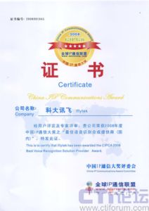 科大訊飛榮獲中國IP通信大獎