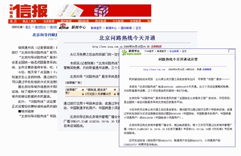 北京向?qū)峋經(jīng)過一個(gè)多月緊張的開通工作,終于于4月18號(hào)正式開通。新浪、網(wǎng)易、TOM等媒體爭相報(bào)道北京向?qū)У拈_通情況。
