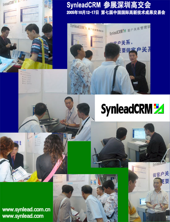 2005年10月12-17日,深圳,SynleadCRM客戶關系管理系統(tǒng)參展第七屆中國國際高新技術(shù)成果交易會(簡稱高交會)。