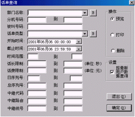 (包括中繼線)進行話單查詢、打印電話明細(xì)單。