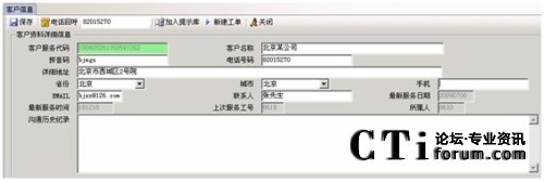 當有電話來電時,系統(tǒng)顯示來電號碼及來電人員的客戶資料信息;