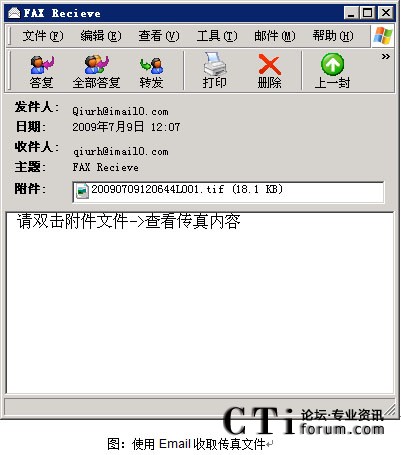 - 系統(tǒng)可以從傳真機(jī)接收高清晰度的傳真至個人傳真信箱、或Email中;
