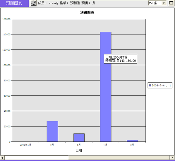 * 100% = 504,402.50元的一個(gè)預(yù)測值,在相同時(shí)間段的機(jī)會預(yù)測值將被累計(jì)求和。很顯然,可以在不同時(shí)間點(diǎn)(例如6月1日、7月1日、8月1日、9月1日)多次對2004年9月的銷售額進(jìn)行預(yù)測。得到一系列的銷售預(yù)測值變動趨勢。