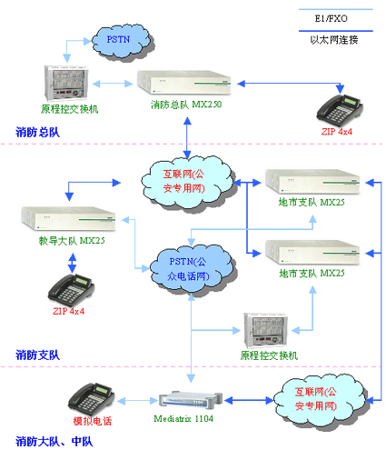 圖3.1 XX省消防系統(tǒng)IP語(yǔ)音通信示意圖一