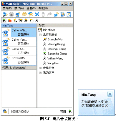 系統(tǒng)提供了靈活的電話會議方式,例如:總經(jīng)理發(fā)起一個電話會議,公司的IT主管、客戶經(jīng)理參加,當聊到IT方面時,需要具體的負責人來解答一些問題,IT主管可以用MXIE或話機將他加入到會議中來,回答完畢后,他可以自己掛機退出會議,IT主管也可以將他退請出會議,而會議不會中斷。