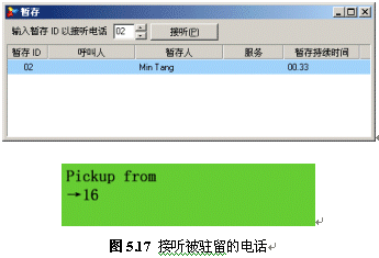 接通后,如果通話內(nèi)容很緊急而又不方便在會議室進行溝通,此時,用戶可以按下話機上的“Park”按鈕,此時對方通話被導(dǎo)入到一段音樂(背景音中設(shè)定的音樂)。記住屏幕上提示的駐留號碼,即可掛機: