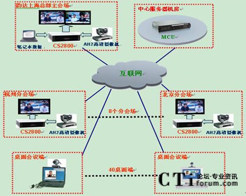 系統(tǒng)為每個點配置華平CS2800全高清視頻終端,它可以實現(xiàn)2路1080P全高清視頻輸入和4路1080P全高清視頻輸出,并且全面支持H.264 High Profile(level5)編碼技術,在視頻精度提高一倍的情況下,所需帶寬減半,實現(xiàn)全動態(tài)1080P視頻傳輸僅需1M的帶寬,配合華平高清MCU,可在韻達快運現(xiàn)有的網絡條件下實現(xiàn)全公司的全高清視頻會議,實現(xiàn)高清、高效溝通。