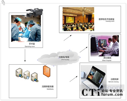 該方案可通過設(shè)置在各手術(shù)室的前端攝像機(jī)、遠(yuǎn)古醫(yī)療直播服務(wù)器等設(shè)備將醫(yī)院手術(shù)室手術(shù)過程進(jìn)行記錄,可通過權(quán)限實(shí)時(shí)觀看,也可自動(dòng)或手動(dòng)上傳至資源服務(wù)器,術(shù)后通過計(jì)算機(jī)播放,可以滿足觀看者隨時(shí)隨地的觀看手術(shù)過程的要求,完全擺脫了傳統(tǒng)示教模式在時(shí)間、空間和人數(shù)上的限制。