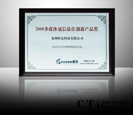 CTI論壇(ctiforum)3月29日消息(記者 袁青):近日,在《中國多媒體通信》雜志及視頻天空網(wǎng)強(qiáng)勢啟動(dòng)的“2009年度中國多媒體通信行業(yè)大獎(jiǎng)”評(píng)選活動(dòng)中,科達(dá)VCS可視指揮調(diào)度系統(tǒng)以其產(chǎn)品的專業(yè)性、直觀性、準(zhǔn)確性及有效性榮獲2009中國多媒體通信行業(yè)“創(chuàng)新產(chǎn)品獎(jiǎng)”。