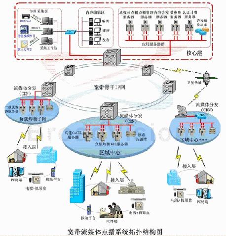 - 寬帶流媒體運營管理支撐系統(tǒng),包括點播內(nèi)容的采集、管理、內(nèi)容分發(fā)、負(fù)載均衡、計費等功能模塊;