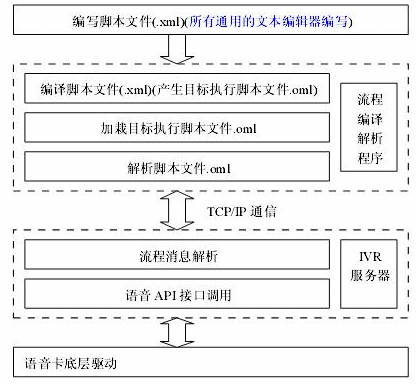本系統(tǒng)平臺(tái)在設(shè)計(jì)時(shí),綜合考慮各種電話語音業(yè)務(wù)的應(yīng)用需要,參考VoiceXML的規(guī)范,利用流行的XML腳本語言格式,設(shè)計(jì)出一種方便、簡(jiǎn)單、使用的應(yīng)用平臺(tái),在該平臺(tái)上可以實(shí)現(xiàn)幾乎所有的電話語音應(yīng)用業(yè)務(wù),免去基礎(chǔ)語言編程的麻煩。只要熟悉本平臺(tái)的腳本語言格式,通過本平臺(tái)提供的各種應(yīng)用實(shí)例腳本,就能快速生成自己需要的業(yè)務(wù)流程,具體腳本語言格式請(qǐng)參考《MyVXML電話流程腳本編程指南》。