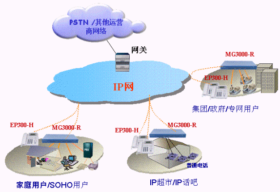 MG3000-R用戶駐地網(wǎng)關(guān)可以基于IP網(wǎng)絡(luò)提供優(yōu)質(zhì)的分組化語音流,使話音、傳真、數(shù)據(jù)在同一IP網(wǎng)絡(luò)中傳送。