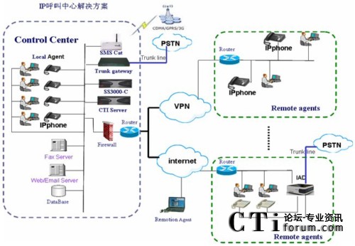 圖:SS3000-C 呼叫中心解決方案系統(tǒng)架構組網(wǎng)圖