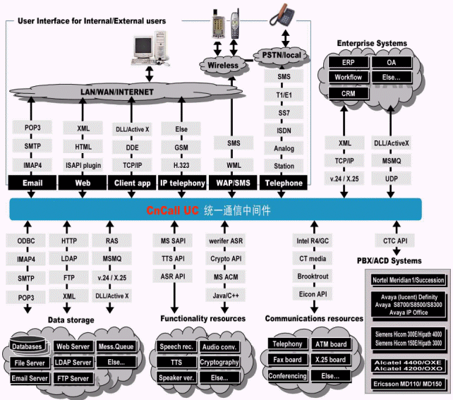 、SMTP、IMAP4等E-mail處理模塊,豐富的數(shù)據(jù)通信和應(yīng)用集成模塊,可以保證統(tǒng)一通信平臺與計算機應(yīng)用系統(tǒng)的緊密集成。