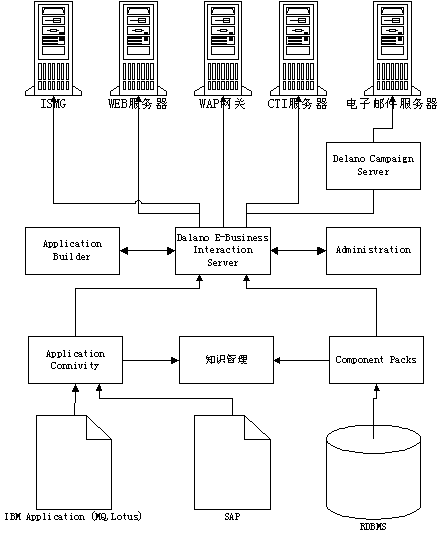訪問層:訪問層包含Delano Campaign Server和Delano e-Business Interaction Suite。通過訪問層,利用現(xiàn)有的電子渠道與客戶交流,完成企業(yè)所制定的客戶關(guān)照流程。