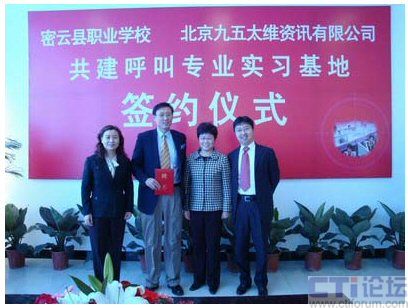 CTI論壇(ctiforum)04月30日消息: 近日,密云縣職業(yè)學(xué)校與北京九五太維資訊有限公司校企合作共建呼叫專業(yè)實(shí)習(xí)基地簽約儀式在密云縣職業(yè)學(xué)校隆重舉行,市教委職成處處長李敏,縣委常委副縣長王春林、副縣長錢福生、副縣長徐芳出席簽約儀式并發(fā)表了講話。密云縣教委主任李鐘勤,北京九五太維資訊有限公司董事長汪遠(yuǎn),首席執(zhí)行官李寶民及其培訓(xùn)師團(tuán)隊,密云縣經(jīng)濟(jì)開發(fā)區(qū)總公司及部分入?yún)^(qū)呼叫企業(yè)出席了簽約儀式。在簽約儀式上,密云縣教委主任李鐘勤向九五太維公司首席執(zhí)行官李寶民博士頒發(fā)了聘書,聘請李寶民博士為密云縣職業(yè)學(xué)校名譽(yù)校長。