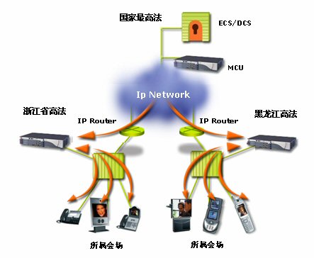 MCU視頻會議交互平臺,組成了由24臺RADVISION MCU實(shí)現(xiàn)的最高法院-22個省級法院-地(市)法院的3級視頻會議網(wǎng)絡(luò)。RADVISION建設(shè)的視頻會議系統(tǒng),既可以實(shí)現(xiàn)每個省單獨(dú)同時(shí)或分時(shí)靈活組建省—地(市)兩級視頻會議,也可以召開最高法院—22個省級法院—地(市)法院的3級視頻會議,并實(shí)現(xiàn)了最高法院對地(市)法院視頻會議終端的直接控制和管理。