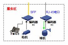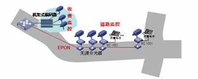 道路沿線監(jiān)控:采用EPON組網(wǎng),路況監(jiān)控球機(jī)接入前端編碼器,多個編碼器通過一根EPON光纖接入到中心交換機(jī)上,布線方便節(jié)省光纖資源。編碼器內(nèi)置交換機(jī)功能可以接入IP報警電話方便公路報警。還可以將支持IP接口的可變信號板和氣象站直接接入編碼器交換機(jī)端口,實(shí)現(xiàn)一網(wǎng)多用,降低整體網(wǎng)絡(luò)成本。
