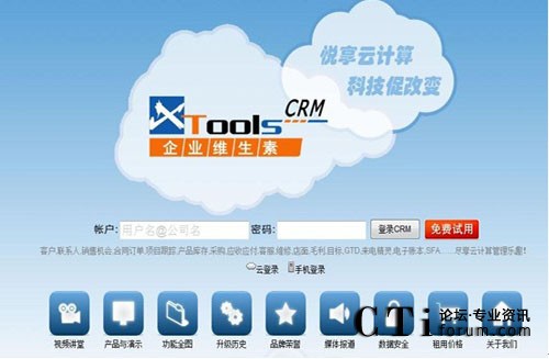 用戶可以選擇訪問速度最快的服務(wù)器登錄自己的CRM系統(tǒng),以解決擁有各地辦事機構(gòu)的人都能快速訪問。據(jù)稱,XTools的“云”服務(wù)能保證更高的安全服務(wù)和電信級的高達99.99%的連接率。