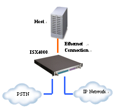 下圖顯示了一個小容量iSX4000 UAP系統(tǒng),該系統(tǒng)由一臺iSX4000 交換機(jī)和一臺主機(jī)服務(wù)器構(gòu)成,主機(jī)上運行所有的軟件,包括主控軟件、用戶應(yīng)用程序和
