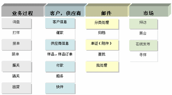 外貿企業(yè)主要通過Email的方式與客戶及潛在客戶進行業(yè)務聯(lián)系。由于一般Email系統(tǒng)的客戶端都是相對獨立的,業(yè)務郵件都分散在各業(yè)務員的Email系統(tǒng)中,客戶資源的統(tǒng)一管理、Email的監(jiān)督、審批、歸檔管理是使外貿企業(yè)頭疼的問題。