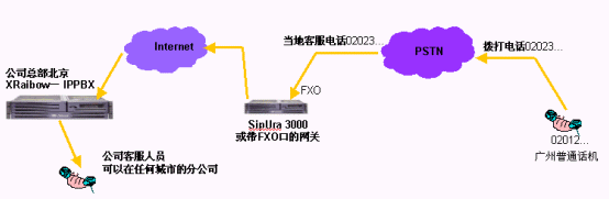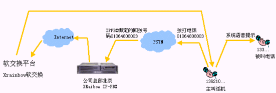 - 跨地域來電轉(zhuǎn)接,比如某個分支機構(gòu)的客戶撥叫該分支機構(gòu)電話,電話接起后,如果客戶需求沒有得到順利的答復(fù),在客戶電話保持的情況下,可以將電話轉(zhuǎn)接到在全國的任何一個IPPBX分機上。