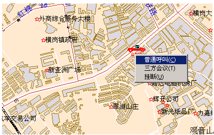 - 可視化指揮調(diào)度:在電子地圖上點(diǎn)擊相應(yīng)的圖標(biāo)即可撥打警力單位的固定電話以及向GPS巡邏車以及集群終端/公安分局/派出所/聯(lián)動(dòng)單位電話號(hào)碼/手機(jī)號(hào)碼發(fā)起單呼和組呼;同時(shí)與接處警席配合使用,可以實(shí)現(xiàn)可視化指揮調(diào)度與非可視化指揮調(diào)度的全方位立體的混合指揮調(diào)度。