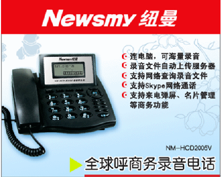 近日,北京紐曼公司(www.newman-cti.com)推出的一款具備強大商務管理功能的NM-HCD2005V全球呼商務錄音電話,以其強大的錄音和獨特的客戶信息管理功能獲得了消費者的青睞。據(jù)了解,這款商務錄音電話除了具備傳統(tǒng)錄音電話的錄音和留言的功能之外,還支持網(wǎng)絡查詢、來電彈屏顯示、名片管理、撥打網(wǎng)絡電話、集中錄音管理,可將錄音上傳到企業(yè)服務器等強大實用的商務功能。
