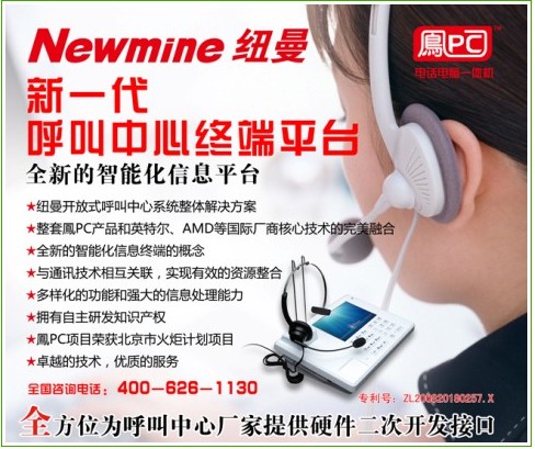 CTI論壇(ctiforum)4月28日消息(記者 張潔): 2011年4月12至13日,在五洲大酒店中國(guó)國(guó)際會(huì)議中心2011中國(guó)呼叫中心及企業(yè)通信大會(huì)(簡(jiǎn)稱(chēng)CTI呼叫中心大會(huì))盛大召開(kāi),本屆展會(huì)展位近百個(gè),規(guī)模2000余平方米,吸引了國(guó)內(nèi)外行業(yè)觀眾數(shù)千人次參與,并將成為2011年度國(guó)內(nèi)及亞太地區(qū)規(guī)模最大的呼叫中心和企業(yè)通信展會(huì)。紐曼騰飛公司在本屆展會(huì)上推出包括智能商務(wù)電話(huà),錄音系統(tǒng),鳳PC(電話(huà)電腦一體機(jī))等多種行業(yè)領(lǐng)先產(chǎn)品,吸引了大批行業(yè)內(nèi)人員及普通消費(fèi)者的關(guān)注。尤其鳳PC的推出更是本屆展會(huì)的一大亮點(diǎn)。