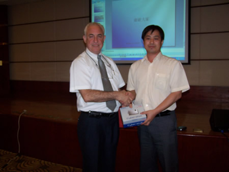圖為北京站研討會一角及一等獎(T33數(shù)碼相機)中獎?wù)吲cDana先生合影。