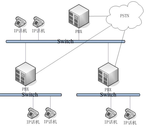 - 復雜網(wǎng)絡結構:適用于大型企業(yè)。在其一端的網(wǎng)絡結構中有多臺PBX,內(nèi)部通訊時可能需要經(jīng)過多個PBX。