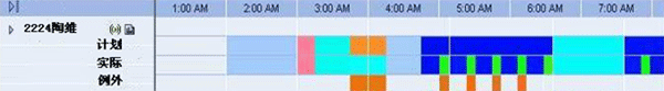 如圖,通過與PBX、CTI系統(tǒng)的接口,排班系統(tǒng)獲取座席的實(shí)時(shí)狀態(tài)信息,如登錄、接聽、話后處理、登出等,并以不同的顏色進(jìn)行表示,與計(jì)劃的班次安排進(jìn)行比對,從而監(jiān)控到座席的遵時(shí)例外(非遵時(shí))。通過這種方式,座席的實(shí)時(shí)狀態(tài)變化能夠及時(shí)的得到監(jiān)控,便于管理人員精確的監(jiān)控遵時(shí),同時(shí),也把班長從遵時(shí)管理中部分解脫出來。