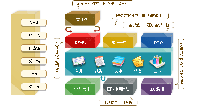 800APP-OA系統(tǒng)包含會議、在線溝通、審批流、預(yù)警平臺、知識庫、公司文化、個人計劃、團(tuán)隊協(xié)同計劃8個功能。