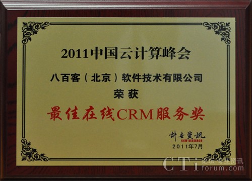 云計算峰會:八百客榮膺“最佳在線CRM服務(wù)獎”