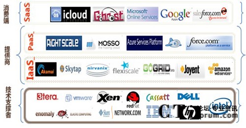 除此之外,云計(jì)算也有CaaS(Communication as a Service,通信即服務(wù))、DaaS(Data as a Service,數(shù)據(jù)即服務(wù))等分類(lèi)形式。業(yè)界主流的設(shè)備廠商、服務(wù)提供商都在定位自己在云中的位置,并制定自己的云戰(zhàn)略。