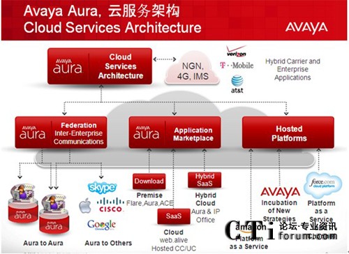 - 當(dāng)其他廠商還在爭(zhēng)論公有云和私有云的優(yōu)劣時(shí),Avaya已經(jīng)開(kāi)始部署企業(yè)的私有云—Avaya Aura 和運(yùn)營(yíng)商的公有云之間如何和諧共處;企業(yè)用戶(hù)的統(tǒng)一通信功能完全基于”按需服務(wù)激活”模式;
