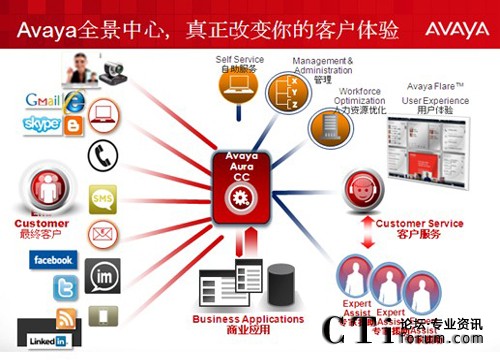 Avaya始終是企業(yè)通信行業(yè)的領(lǐng)導(dǎo)廠商,更是呼叫中心領(lǐng)域市場(chǎng)占有率第一的解決方案供應(yīng)商。Avaya認(rèn)為,呼叫中心并不是簡(jiǎn)單的電話(huà)通信,而是建置在通信平臺(tái)上的業(yè)務(wù)應(yīng)用和運(yùn)營(yíng)管理平臺(tái),這也是Avaya在呼叫中心領(lǐng)域取得成功的理論基礎(chǔ)。今天,業(yè)界在熱烈研討云通信的課題,Avaya當(dāng)然也有自己的云戰(zhàn)略。Avaya對(duì)云呼叫中心的定義是,基于SIP的開(kāi)放性技術(shù),將呼叫中心的三個(gè)核心因素(即企業(yè)通信、業(yè)務(wù)應(yīng)用、運(yùn)營(yíng)管理)統(tǒng)一放在云計(jì)算的架構(gòu)下設(shè)計(jì)而成的下一代多媒體聯(lián)絡(luò)中心。Avaya始終認(rèn)為,單純考慮某一方面問(wèn)題都不是完整的云呼叫中心,呼叫中心歸根結(jié)底是個(gè)業(yè)務(wù)問(wèn)題。