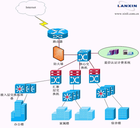在此形勢下,解放軍后勤工程學院積極探索,尋求現(xiàn)代校園網(wǎng)建設(shè)的新出路。經(jīng)過對各種方案的收集整理,解放軍后勤工程學院與重慶電信達成共識,一起共謀現(xiàn)代校園網(wǎng)建設(shè)新模式:重慶電信負責提供網(wǎng)絡(luò)帶寬及軟硬件資源,依賴其深厚敦實的技術(shù)后盾及多年豐富的建網(wǎng)經(jīng)驗,攜手信利公司的藍信認證計費系統(tǒng)為校方提供一套從硬件到軟件的完整解決方案,讓廣大師生能快捷方便地享受更加豐富的網(wǎng)絡(luò)服務(wù);而校方依據(jù)當前網(wǎng)絡(luò)狀況,可以對使用用戶進行行之有效的管理和維護,徹底解決了校方之憂,開辟了當前形勢下的新天地。