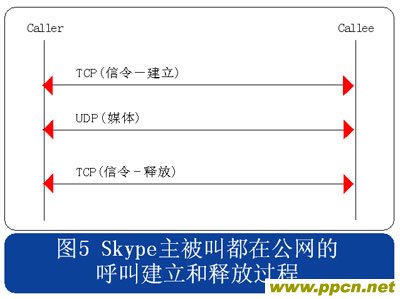 從上述流程圖可見,Skype的呼叫信令都采用TCP封裝,而媒體流則使用UDP封裝,當有任何一方用戶位于限制UDP包的防火墻內(nèi)時,媒體流就會采用TCP封裝。另外當Skype用戶至少有一方位于私網(wǎng)內(nèi)時,所有的信令和媒體消息都經(jīng)過一個或多個中間節(jié)點轉(zhuǎn)發(fā)。此時無需擔心用戶通話的媒體流因為經(jīng)過中間節(jié)點轉(zhuǎn)發(fā)而被竊聽,因為Skype采用了對消息進行端到端加密的機制。