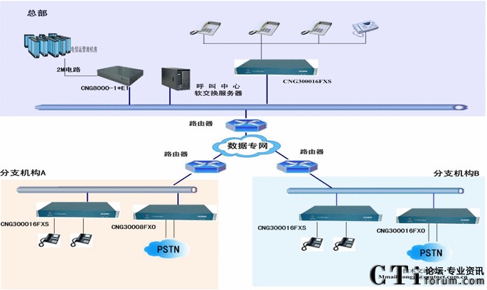 通常情況下座席必須安裝在呼叫中心平臺(tái)附近500米之內(nèi)的地方,在很多情況下,分布式的呼叫中心座席分布在各個(gè)城市。因此需要為呼叫中心平臺(tái)提供遠(yuǎn)程的呼叫中心座席人員。本方案主要描述的是模擬語(yǔ)音網(wǎng)關(guān)在呼叫中心的應(yīng)用。