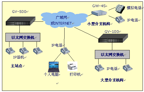 - 此拓樸圖示意了企業(yè)內(nèi)部VoIP通訊系統(tǒng)和傳統(tǒng)的電話交換系統(tǒng)并存模式,此種結(jié)構(gòu)最小的改動客戶原有的電話布線結(jié)構(gòu),最大化的方便公司成員的使用;
