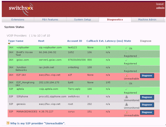 圖2中綠色表示正常,紅色表示出現(xiàn)問題,白色表示從沒有接通過。如果你按診斷(Diagnose),系統(tǒng)便會(huì)通過自動(dòng)測試,告訴你問題出自那一段落。如果需要對每一個(gè)的詳細(xì)解析,可以按底部Why這個(gè)標(biāo)題,找尋答案。類似的終端、話機(jī)等配置、硬件診斷等,也有非常明撩的界面與解決問題的辦法。