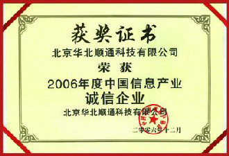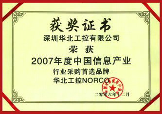 2007年1月16日,由中國(guó)計(jì)算機(jī)用戶協(xié)會(huì)(簡(jiǎn)稱CCUA)主辦的“中國(guó)計(jì)算機(jī)用戶協(xié)會(huì)2006年度企業(yè)及產(chǎn)品推介頒獎(jiǎng)大會(huì)” 在北京世紀(jì)金源大飯店隆重召開,通過(guò)對(duì)中國(guó)境內(nèi)從事IT產(chǎn)品生產(chǎn)、銷售、集成和服務(wù)企業(yè)的經(jīng)營(yíng)規(guī)模、服務(wù)能力、產(chǎn)品使用效果、企業(yè)誠(chéng)信和持續(xù)發(fā)展能力等多項(xiàng)指標(biāo)進(jìn)行綜合評(píng)定,揭曉了中國(guó)信息產(chǎn)業(yè)2006年度優(yōu)秀企業(yè)評(píng)選與產(chǎn)品推介活動(dòng)結(jié)果。華北工控憑借其在業(yè)內(nèi)深入人心的影響,再次獲得“2006年度中國(guó)信息產(chǎn)業(yè)誠(chéng)信企業(yè)獎(jiǎng)”和“2007年度中國(guó)信息產(chǎn)業(yè)行業(yè)采購(gòu)首選品牌”。