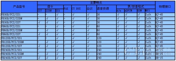 VD-PCI系列數(shù)字中繼語音卡一覽表