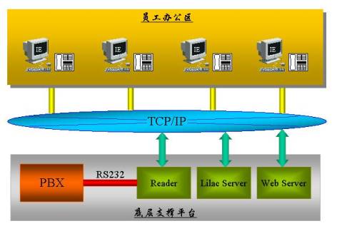系統(tǒng)構(gòu)造基于Web/Brower方式,每個(gè)員工端無需安裝任何軟件,只需通過啟動IE,輸入您的分機(jī)號便可方便地選擇自己當(dāng)天的工作位置。